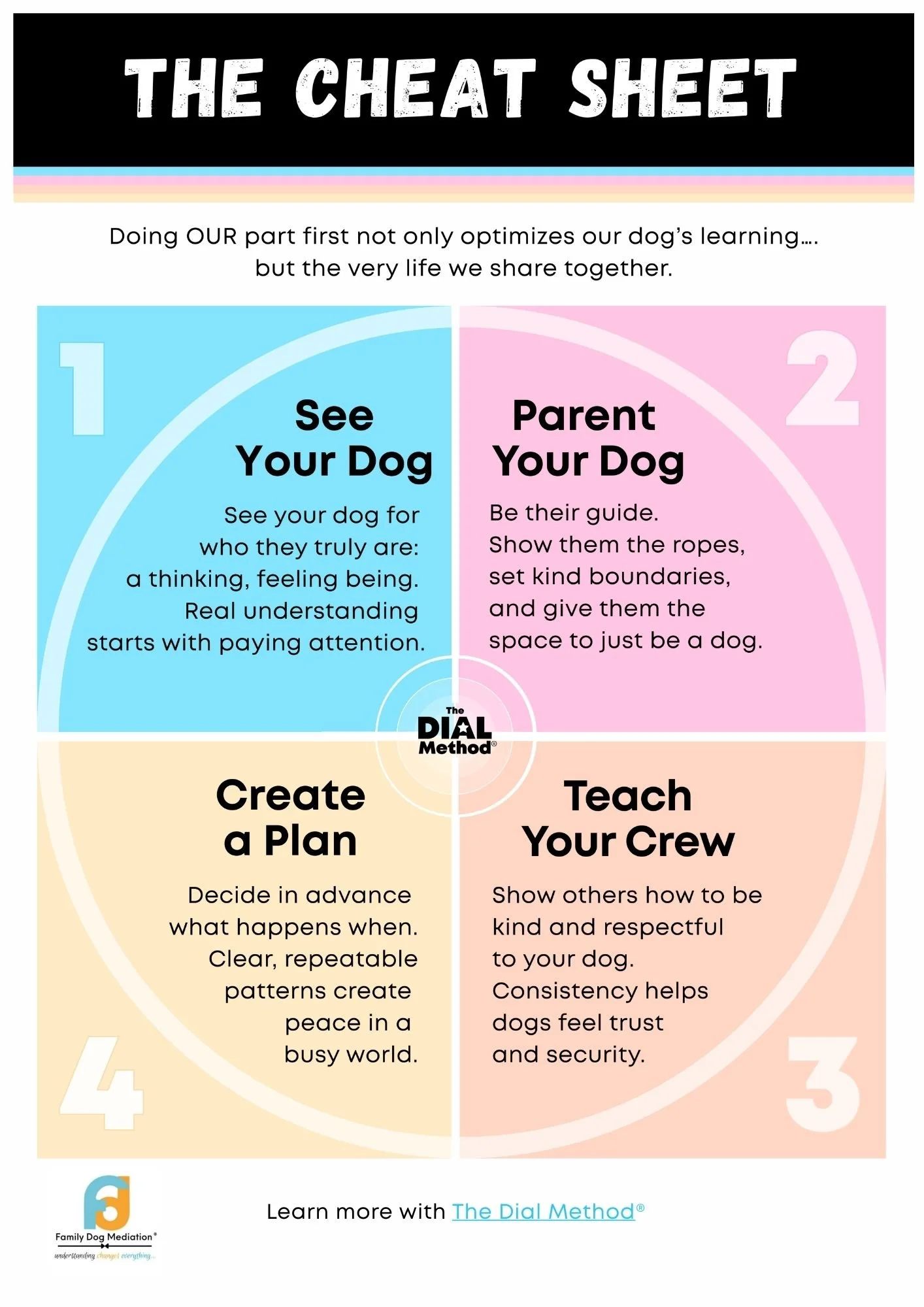 I highly recommend The Family Dog® The Dial Method™ video if you want to truely understand your dog.